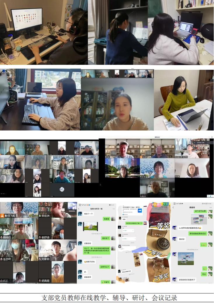 线上教学,党员带动。疫情期间,风景园林系7门本科课程全部及时转为线上教学,各课程教学组在党员组长的带动下,倡导以学生为中心,以保证教学质量为主线,加班加点调整教学内容。风景园林初步课程教学组为了不让任何同学掉队,教学组分配任务全天在线为学生答疑,并特别为担任志愿者工作的同学开设补习辅导通道;全体研究生导师积极调整指导方式,根据研究生的隔离状态,在保证开题报告、毕业预答辩及其他科研计划的顺利进行之后,分类组织形式多样的线上活动,关爱学生生活的同时时刻关注学生的心理健康。