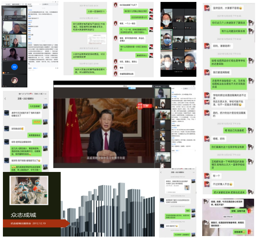 关爱学生,制动不制情,隔离不隔爱。针对大部分学生制动、部分学生隔离的情况,城乡规划系党员同志率先示范,积极承担思政班主任工作,持续关注学生在防疫期间的身心健康和学习情况。郭婷、朱瑜葱、郭其伟等党员,主动联系帮扶对接隔离学生,全情投入线上心理疏导、学习辅导工作,缓解制动学生、隔离学生的焦虑情绪,帮助学生顺利返校。张薇副教授的研究生在封校当天开始出现发热症状,在隔离期间,每天悉心关注学生的身体健康及思想状况直至恢复健康。