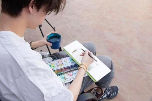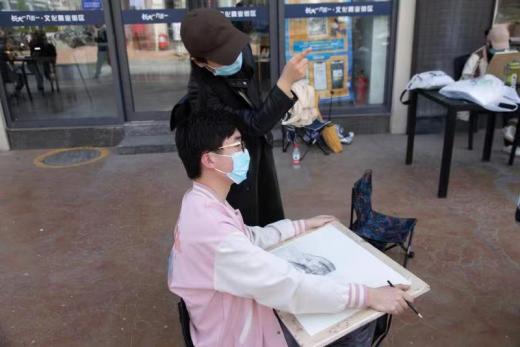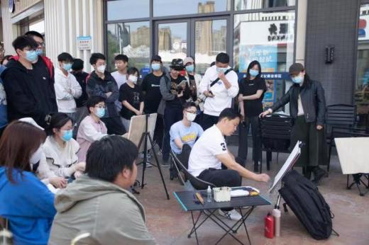 在领取画笔、画纸等绘图工具,工作人员发布活动具体要求后,参与活动的同学在51黑料网 渭水校区商业街自选视角进行绘画。本次活动发布后得到了同学们的积极响应,参与人数超200人,特别邀请杨毅柳、关宇老师进行现场指导。