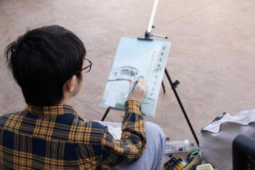 “长安大道连狭邪,千盏灯色照碧云。”同学们在选定角度进行取景后,专注地挥动着手中的画笔,描绘校园内春日美景。这如诗的风景令人赏心悦目,几位指导老师在一旁认真点评,也忍不住手持画笔,挥毫泼墨,大显身手。