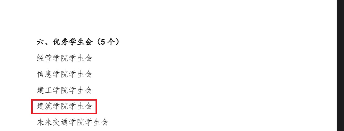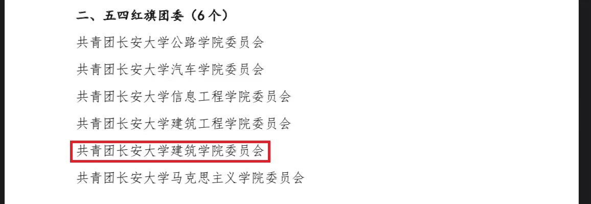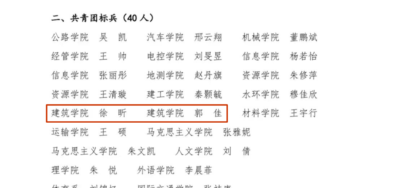 在先进集体表彰中,学院团委荣获“五四红旗团委”,学生会荣获 “优秀学生会”,建筑日系列活动荣获“校园文化活动优秀品牌”,2个团支部荣获“五四红旗团支部”, 3个团支部荣获“活力团支部”,4个团支部荣获“优秀主题团日活动”;在优秀个人表彰中,2人荣获“共青团标兵”,48人荣获“优秀团干部”,83人荣获“优秀团员”,3人荣获“魅力团支书”,9人荣获“优秀青年志愿者”,14人荣获“网络新媒体宣传优秀个人”,25人荣获“校园文化活动优秀个人”,6人荣获“校园运动达人”;在十四运会和残奥会表彰中,9人荣获“优秀志愿者”,4人荣获“优秀学生演员”;在抗击新冠肺炎疫情表彰中,4人荣获“抗疫青年标兵”,23人荣获“优秀青年抗疫志愿者”。