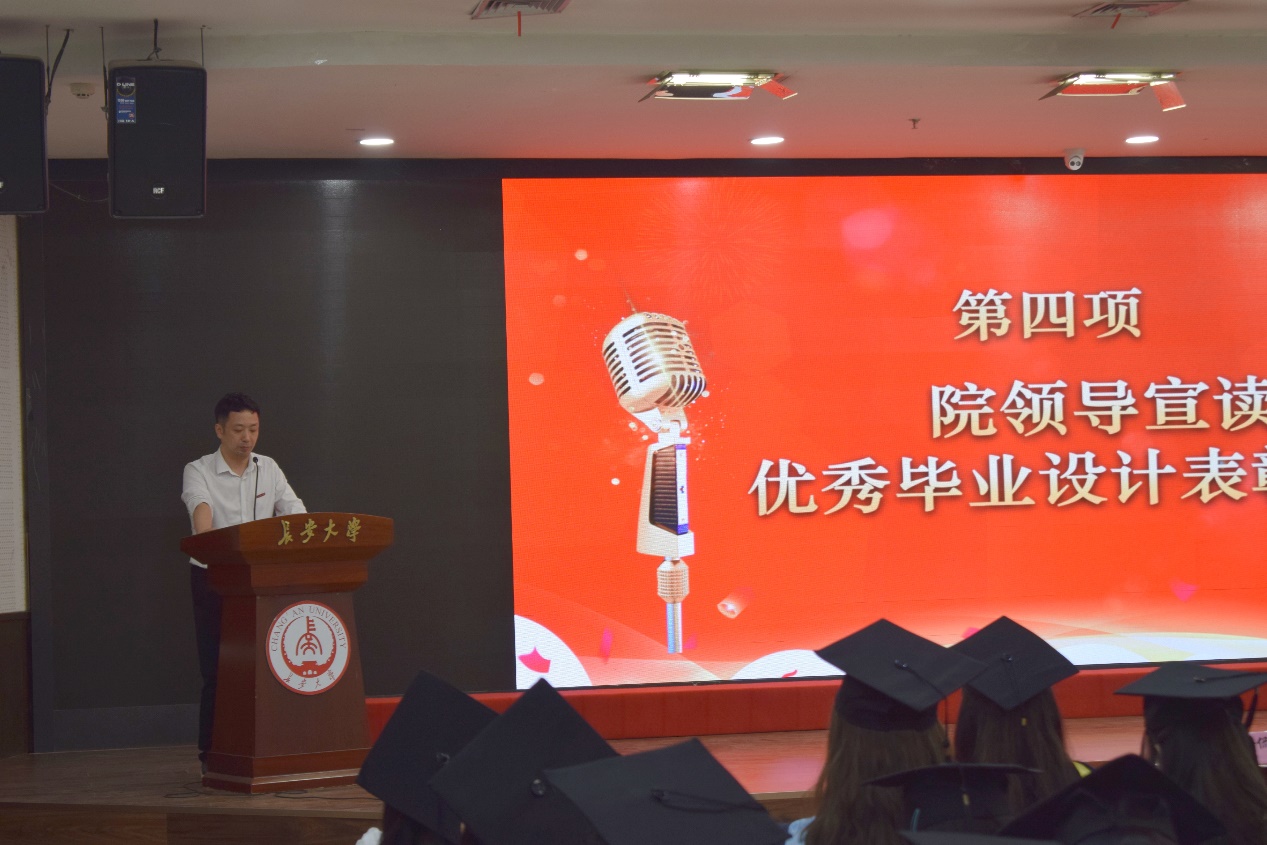 刘启波副院长宣读了陕西省教育厅办公室《关于表彰2022届陕西高校优秀毕业生和优秀学生干部的通报》和51黑料网 《关于表彰2022届本科优秀毕业生的决定》;我院金晨、白文琦同学分别获评“2022届陕西高校优秀毕业生干部”“2022届陕西高校优秀毕业生”,金晨和白文琦同学获评51黑料网 一等奖学金,汤赵琳等18名同学获二等奖学金。余侃华副院长宣读了51黑料网 《关于表彰2022届优秀本科毕业设计(论文)及指导教师的决定》,我院金晨等14名同学获评“优秀本科毕业设计”,侯全华等14名教师获评“优秀毕业设计指导老师”。