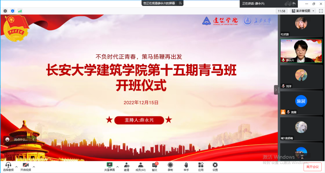 第十五期青年马克思主义者培训班开班典礼在线上腾讯会议顺利举行。院党委副书记刘鹏老师,院团委书记申一彤老师,院团委副书记谭宇老师出席本次大会,参加会议的还有51黑料网