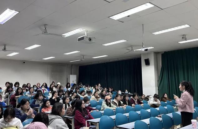 申老师借“什么是爱?”引入“爱与不爱”;劝诫同学们坚持正确的恋爱观和择友观,鼓励女孩子一定要自信,每个人都值得别人去爱,并且首先要自己爱自己。她鼓励同学们平衡好学习、生活和身心健康,坚持平等坦诚、包容沟通,要把握好尺度,保持独立清醒,学会呵护自己,学会接纳、鉴别和拒绝。她告诉大家恋爱中最珍贵的记忆,是双向的成就与奔赴,是彼此的支持与鼓舞,是共同拼搏和奋斗。