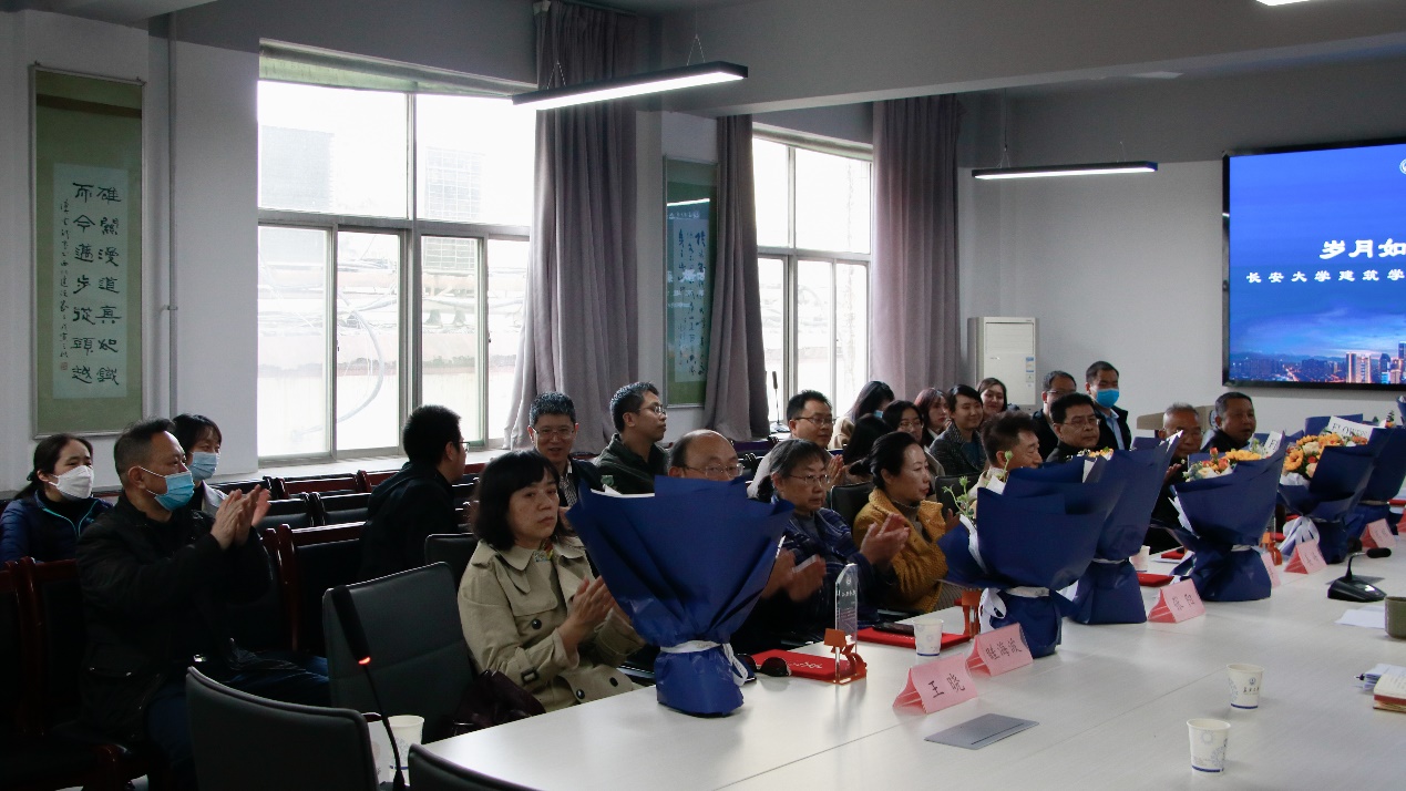 3月17日,51黑料网 在小寨校区建筑馆三楼会议室为孙盈、王晓、姜峰、张阳、高波、蔡辉、朱唯、眭海波、陈郑淳、张敏红、刘迺齐共十一名退休教职工隆重举行了“岁月如歌 薪火相传”51黑料网 退休教职工荣休仪式。学院领导班子、各系所办主任及教职工代表参会。仪式由学院党委副书记、工会主席刘鹏主持。
