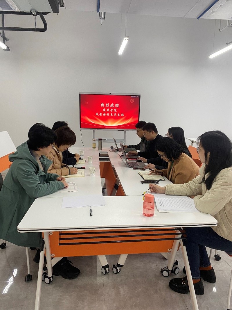 会上,陈轶嵩教授首先对风景园林支部的到访表示热烈欢迎,分别介绍了车辆工程系的发展历程、基本情况,结合全国高校黄大年式教师团队的申报与评选介绍了近年来本系教师队伍在教学、教改、科研等方面取得的进展与成果;支部书记袁望方老师就如何加强基层党组织建设,发挥党支部战斗堡垒作用进行了阐述,介绍了支部立足“七个有力”开展了规章制度建设、新媒体平台建设、党建室建设,以及乡村扶贫和多样化常态化的党建活动等内容;支委冯镇老师对支部党建活动的宣传与组织、省级样板支部的申报进行了讲解。风景园林系支部书记吴焱老师介绍了本支部的发展情况以及党建工作的进展。双方在党建活动及样板支部申报进行了热烈的讨论。