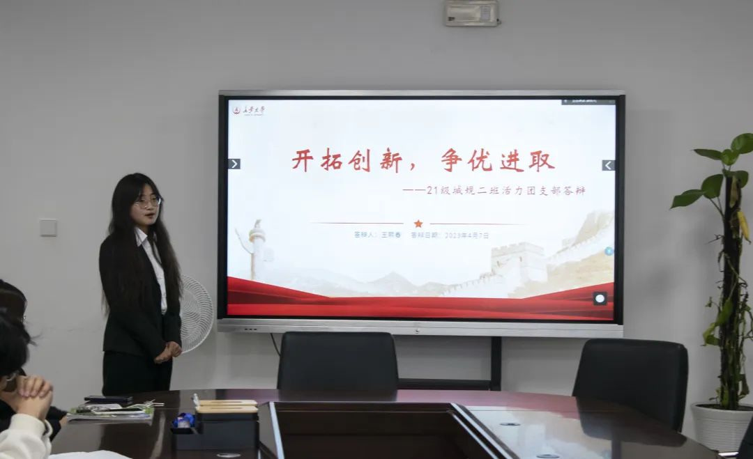 本次答辩会共分为三部分,依次为五四红旗团支部答辩、活力团支部答辩以及优秀团日活动答辩。会议伊始,主持人薛永兴同学就本次答辩会的规则进行简要介绍。本次答辩会共有10个团支部参加,其中2020级4个,2021级4个,2022级2个,各团支部代表依次围绕团支部思想文化建设、团员队伍建设、支部能力建设、主题团日活动等方面进行汇报答辩,从不同角度展示了我院学生昂扬向上的精神面貌,充分展现了青年学子的青春风采与使命担当。
