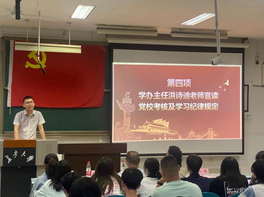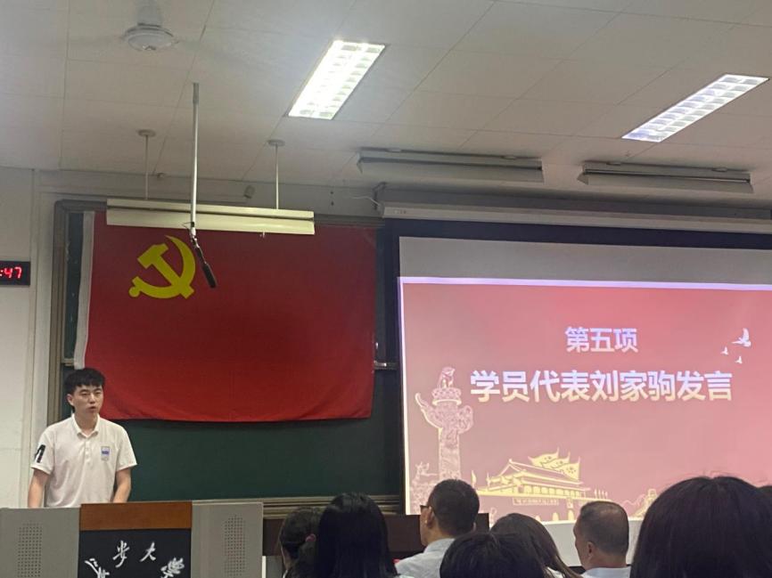 随后,培训班班主任王杰老师介绍本期培训班授课以及学员的基本情况;学办主任洪诗迪老师宣读党校考核及学习纪律规定;刘家驹代表培训班学员进行发言;落昊飞老师带领2022年秋季。