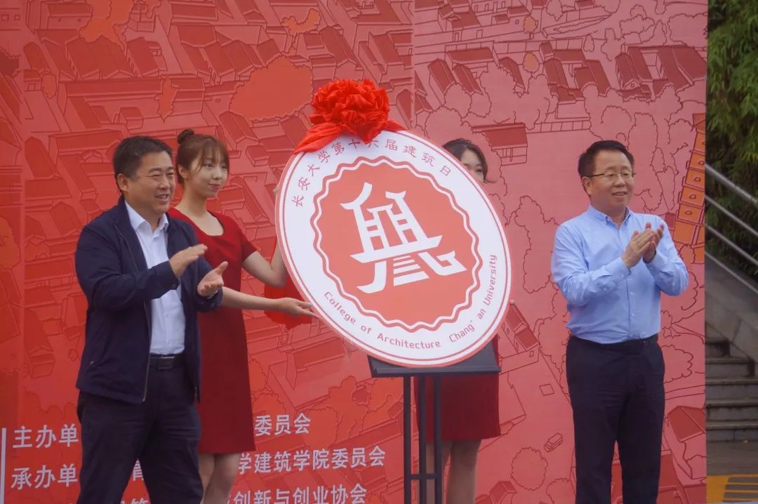 大会第五项,“建筑日”会徽揭幕。校党委办公室主任李国光老师、校长办公室主任郭万江老师为“建筑日”会徽揭幕。