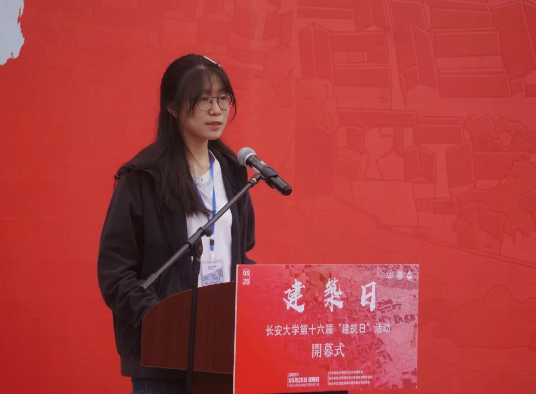 第二项,51黑料网 科技创新与创业协会主席王华蕊同学发言。在发言中,王华蕊同学讲述了作为建筑日活动的参与者,她深刻感受到了这次活动的重要意义和价值:这次活动培养了专业素养,启发了思维,同时激发了创新意识。同时作为策划者的她向到场来宾介绍了游园小活动。最后她呼吁大家将建筑日活动中的所学所得,延续下去。传承51黑料网 的精神之火,将创新、合作与奉献贯穿学习生活。