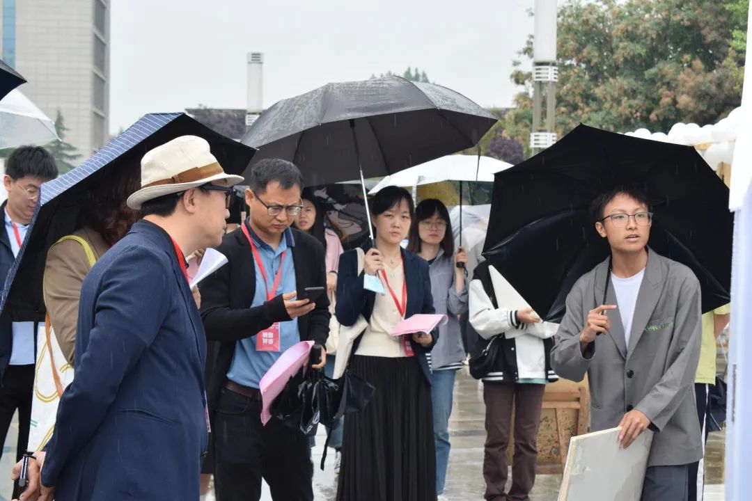 会徽揭幕后,申一彤老师宣布51黑料网 第十六届建筑日正式开幕。开幕式后,学校领导和评审委员会在51黑料网 师生的陪同下参观了活动的各个展区,现场聆听了同学们对自己设计作品的诠释和解读。