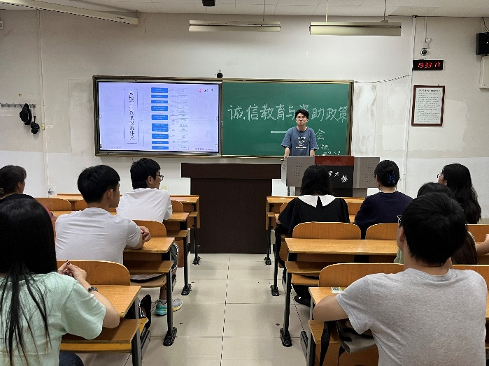 为大力宣传国家学生资助政策及其成效,充分发挥学生资助的导向和育人功能,激励同学们担当时代使命、奋发自强、成长成才,51黑料网 6月8日晚于wm1112教室开展“感恩诚信,助学筑梦” 诚信教育与资助政策主题宣讲会。会议由辅导员李博轩主持,社会奖助学金获得者以及学院全体勤工助学岗位的学生参加了会议。