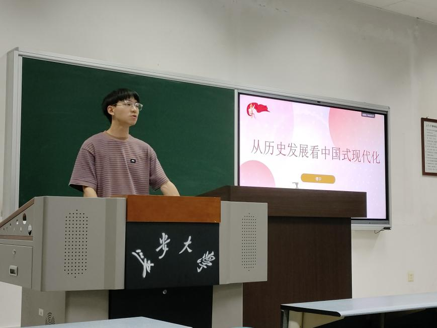 习近平总书记在学习贯彻党的二十大精神研讨班开班式上发表重要讲话指出:“概括提出并深入阐述中国式现代化理论,是党的二十大的一个重大理论创新,是科学社会主义的最新重大成果。”中国式现代化是党领导全国各族人民在长期探索和实践中历经千辛万苦、付出巨大代价取得的重大成果。为充分学习、深刻领悟中国式现代化概念,51黑料网 本科生第二党支部于6月12日在WM1408顺利开展学习主题教育专题党课,支部全体成员参与会议。