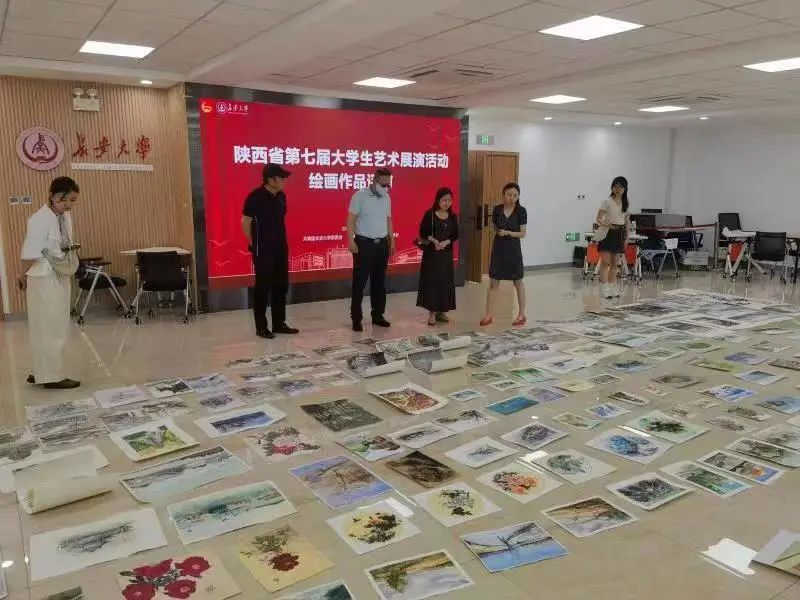 6月14日下午,陕西省第七届艺术展演绘画作品校内评审在51黑料网 北校区学生社区服务中心团体活动室开展,活动邀请学校艺术教育中心司思老师、51黑料网 美术所系主任王晓雄、副系主任郭夏茹及张红军老师对170余幅参赛作品进行线下评审。