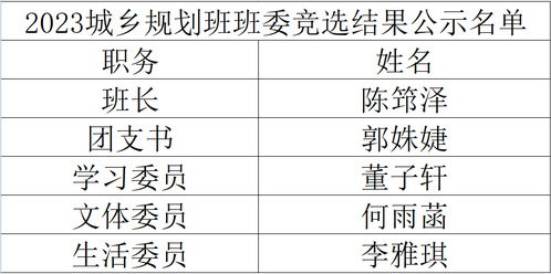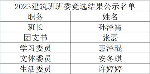 以下是各班级班委竞选结果:
