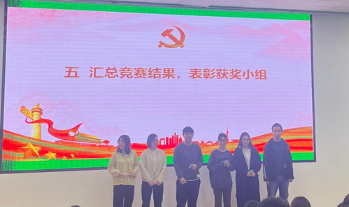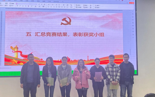 活动第五项,汇总竞赛结果,表彰获奖小组。在激烈的竞赛之后,竞赛结果揭晓,第一小组斩获第一名,第五小组获得第二名,第四小组和第九小组获得第三名,获奖小组的精彩表现受到了热烈的掌声和表彰。