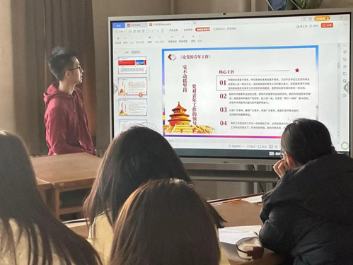 本次主题团课从挺膺担当的体现、如何培养挺膺担当的品质、强国有我挺膺担当三方面开展。在团课环节,党员代表首先引导大家深入学习了习近平总书记的重要讲话精神。通过解读习近平总书记的指示和新年贺词,使同学们更加深刻地理解了挺膺担当的内涵和意义。这不仅帮助同学们坚定了理想信念,还为他们在学业、社会实践和志愿服务等方面提供了行动指南。