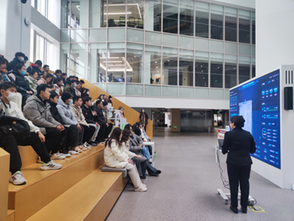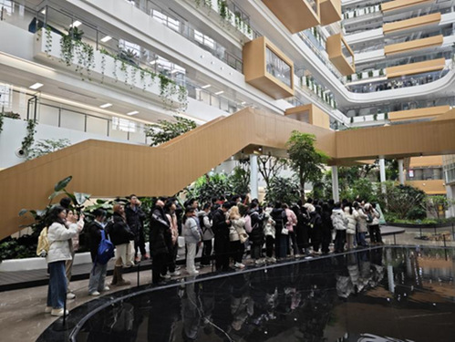 同学们依次参观了大厦中庭空间、工作区域及休息区域,近距离观察到建筑设计、建造、运维过程中所运用的环保低碳的绿色建筑技术、数字化办公系统以及智能化管理系统;体会到设计对处于建筑中的人及其行为所带来的潜移默化的影响。通过在建筑中的具身体验及工作人员的讲解,同学们被数字技术在建筑中的应用深深吸引,深刻感受到数字科技对建筑设计的引领、建筑智能与行为方式的结合。