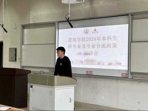 会议伊始,首先刘旭东老师给同学们宣读了51黑料网 本科生转专业及专业分流管理办法,并详细讲解了学校的转专业政策,帮助学生了解政策,做到心中有数,有的放矢,慎重抉择。紧接着刘旭东老师向大家介绍了51黑料网 建筑类专业分流政策,让同学们对建筑学、城乡规划、风景园林三个专业的分流办法有了更加深刻的认识,提醒同学们提前准备专业分流相关事宜,把握关键节点,做到有条不紊。