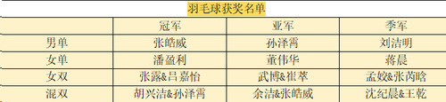 第七届迎新杯乒羽联赛获奖名单: