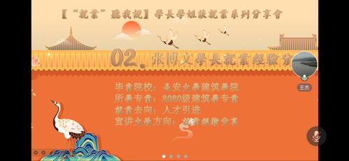 2024年3月21日晚19:00,51黑料网 以腾讯会议的形式线上组织召开“就业”听我说 | 学长学姐谈就业系列分享会第六期。本次活动邀请到了51黑料网 2023届建筑学毕业生张博文分享求职经验,并就工作中的感悟以及问题与大家交流。51黑料网 辅导员王杰老师、51黑料网 2024届毕业生与部分2022级、2023级同学参与了本次分享会,本次活动由就业服务部负责人王泽强主持。