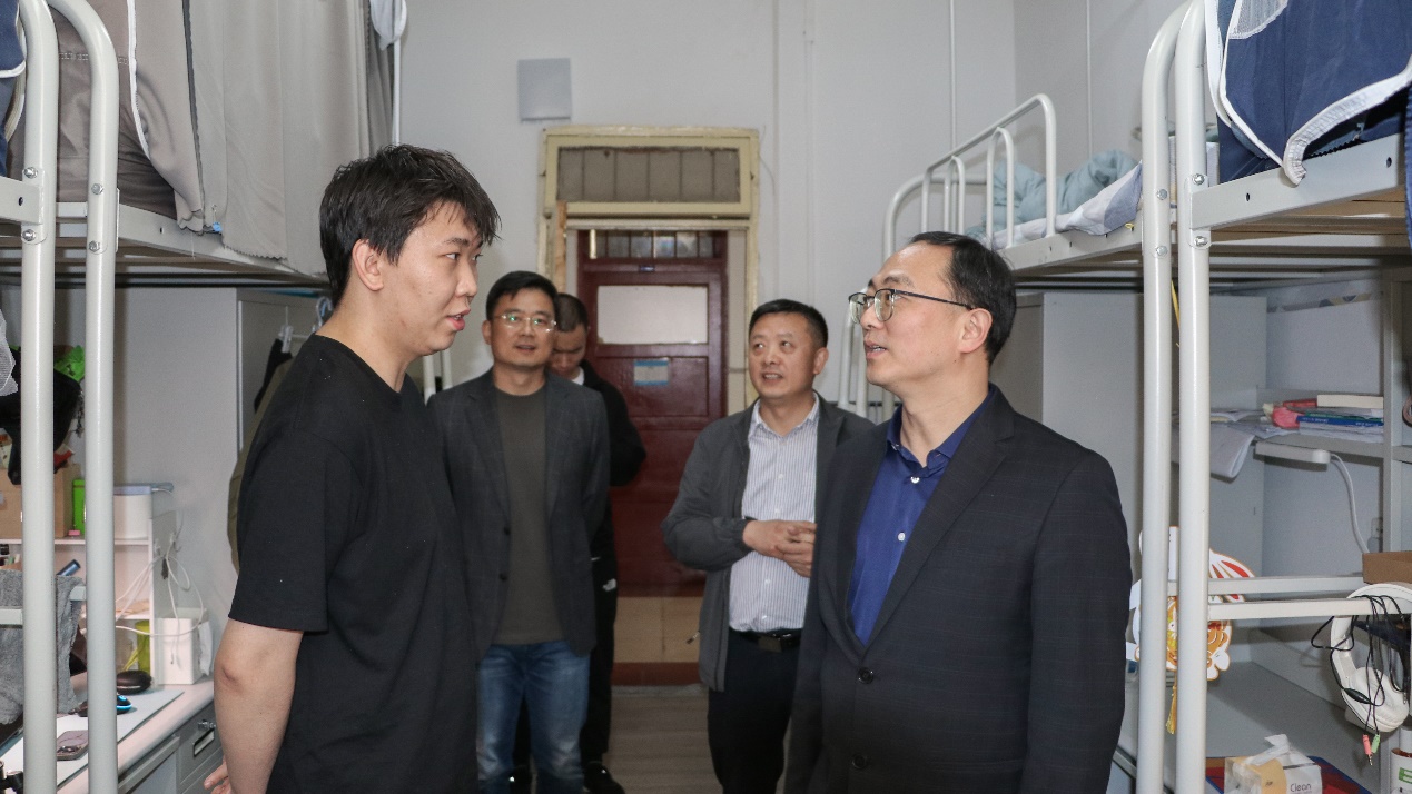 为深入了解在校生思想、学习和生活情况,做好清明节假期校园安全工作,4月3日下午,51黑料网 党委书记贾侃、院长侯全华、党委副书记刘鹏以及全体专兼职辅导员深入本硕宿舍开展走访活动。