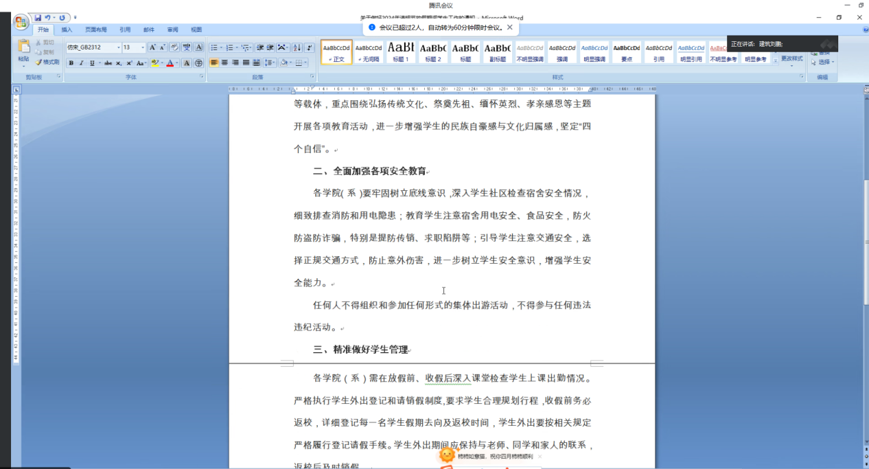 在明确学生假期安全稳定工作要点后,本硕各年级辅导员组织全体本科学生生分年级、分时段开展假期安全教育大会。