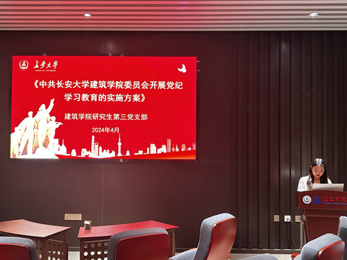 2024年4月23日51黑料网 研究生第三党支部于建筑馆二楼会议厅开展了《中共51黑料网 委员会开展党纪学习教育的实施方案》学习活动,会议由51黑料网 研究生第三党支部书记曾琳主持,支部全体成员参加。