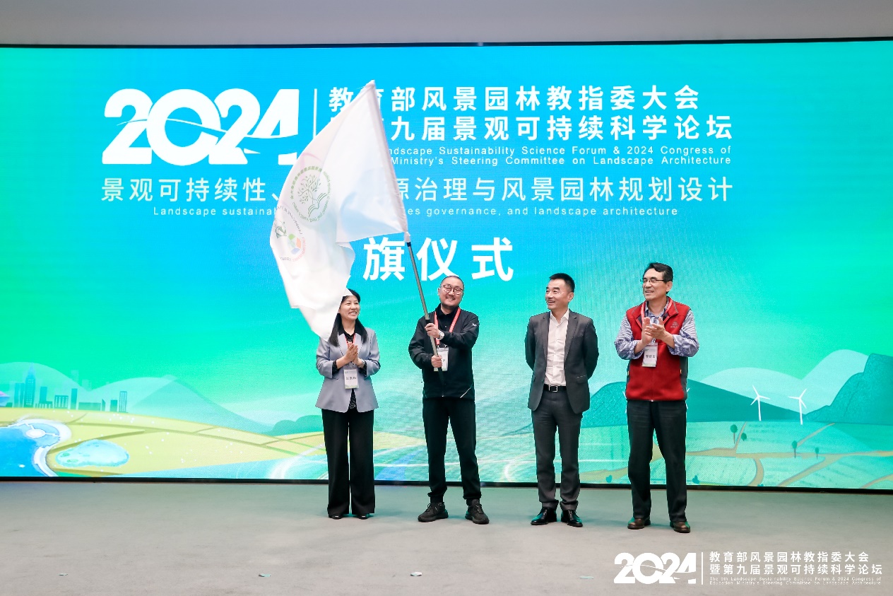 2024年5月10日至12日,南京农业大学承办2024年教育部风景园林教指委大会暨第九届景观可持续科学论坛。在次此大会期间由风景园林教指委全体成员集中讨论确定2025年教育部风景园林教指委大会暨第十届景观可持续科学论坛主题为“全球变化背景下的景观可持续性与风景园林教育”,并由51黑料网 主办。在接旗仪式中,白骅副院长作了51黑料网 简介及我校风景园林学科专业发展历程并成功接受会旗。