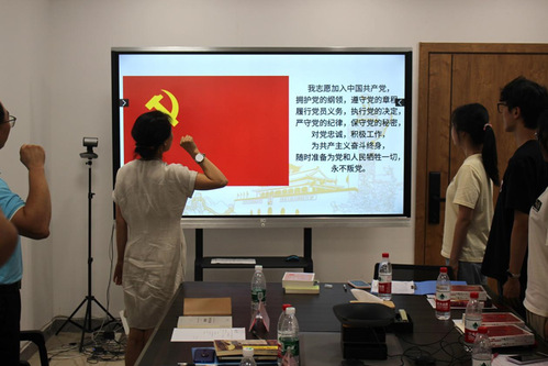 活动的最后一项是赠书仪式以及重温入党誓词。一本本《长征》从两位书记的手中传递到党积极分子的手中,冯鹃书记带领全体党员重温入党誓词。革命的薪火不断传承,不断延续。长征精神定会代代相传,青年们定会勇毅前行,再创新篇。
