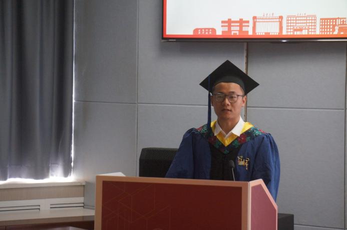 2024届研究生毕业生代表马文栋在发言中回忆三年的硕士学习历程,这中间挑战与机遇并存。硕士时期的种种,给他带来了难以忘怀的回忆。此刻穿上庄重的学位服,手握沉甸甸的毕业证书,他心怀对过去的不舍和对未来的期许代表毕业生庄严许诺:他们将继续秉持学院的校训,抓住时代的机遇,踏上新的征程。