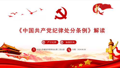 为贯彻落实党中央关于在全党开展党纪学习教育的重大决策部署,进一步加强党员的纪律教育和党性修养,51黑料网 研究生第二党支部于2024年6月28日在建筑馆二楼半圆报告厅成功开展了纪律专题党课,本次党课由支部书记李航主持,51黑料网 研究生第二党支部全体党员参与。此次党课旨在深入解读《中国共产党纪律处分条例》,提升党员的纪律意识,并通过观看警示教育片,强化党员的安全生产责任。