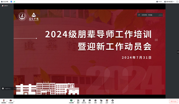 为做好学院2024级迎新准备工作,帮助新同学更快完成角色身份转变,适应校园生活,进一步了解院情,51黑料网 于7月31日下午15:00时召开2024级朋辈互助工作培训暨迎新工作动员线上会议。参加本次会议的有51黑料网 学办主任洪诗迪、团委书记申一彤、2022级本科生辅导员周艳龙、2023级本科生辅导员张鸿忠、2024级本科生辅导员落昊飞、2024级全体朋辈导师以及学院各学生组织负责人。会议由周艳龙主持。