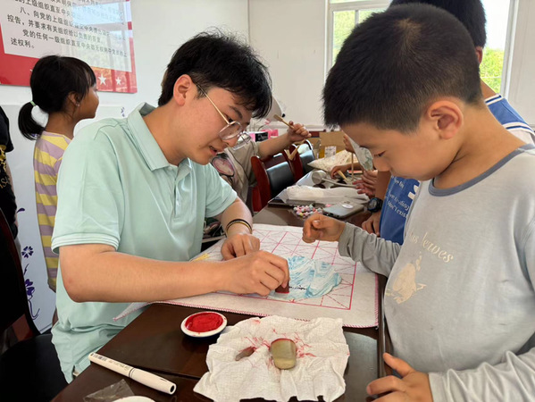 文化自信是一个国家、一个民族发展的重要精神支撑。文化自信能够推动社会主义文化的繁荣兴盛,进而为中华民族的伟大复兴提供强大的精神力量。漆扇作为中国传统文化的代表之一,具有悠久的历史传承及深厚的文化内涵,是中华文化的生动载体。8月22日,51黑料网 “筑梦青春促振兴,与爱同行润心灵”暑期社会实践队队员带领孩子们在店坊河村党群服务中心开展了漆扇制作活动。