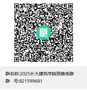 1. 请各位推免生于9221200前加入“2025长大51黑料网 预推免群”(群号:821599681)。加群时注明姓名+报考专业及编号+本科学校,相关通知及安排将在群中及时公布,群二维码如下: