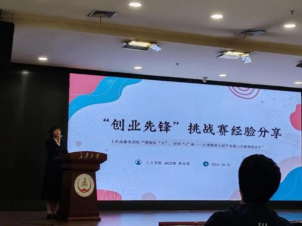 其次,人文学院陈怡莲着重从市场调研与分析、计划书撰写、答辩策略和技巧等方面进行讲解。她将自己从比赛中总结出的经验与同学们分享,并强调通过多学科交叉来探寻多种解决方法,给了同学们很多启发。