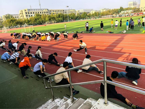 各班体委每周督促班级同学进行步道乐跑打卡,并且每周进行时长不少于90min的户外集体体育锻炼,训练项目种类丰富,涵盖跑步、跳远、引体向上(男)、仰卧起坐(女)等等,从力量训练到耐力挑战,每一项活动都充满了挑战与乐趣。