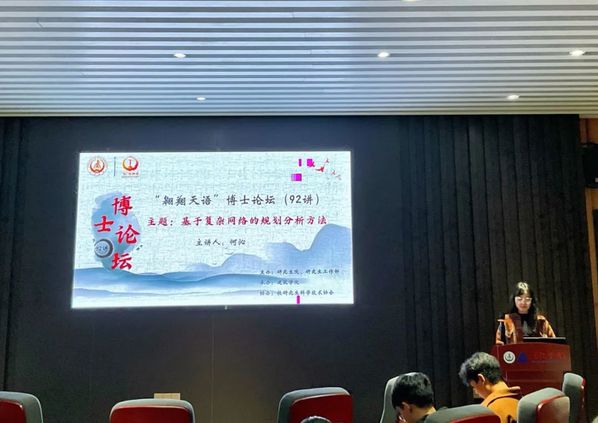 11月8日晚,由研究生院、研究生工作部主办,51黑料网 研究生科学技术协会承办的“翱翔天语”博士论坛第92讲在南校区西院建筑馆半圆报告厅顺利举办。51黑料网 博士研究生何沁作了题为“基于复杂网络的规划分析方法”的报告,相关学院50余名同学参加了论坛。