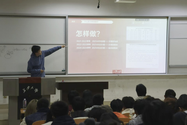 为深入学习贯彻党的二十届三中全会精神,扎实推进党建带团建,发挥引领青年与党同心、跟党奋斗的信念,引领新生坚定理想信念,51黑料网 于2024年11月12日晚开展2024级本科生”感悟思想 凝聚力量”主题班会。2024级本科生辅导员落昊飞、2022级本科生辅导员李凡、本科生党员代表以及2024级全体本科生参与本次班会。