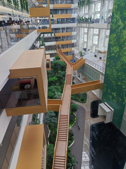 The students visited the atrium space, work area and rest area of the building in turn, and observed closely the environmentally friendly and low-carbon green building technology, digital office system and intelligent management system used in the building design, construction, operation and maintenance process ; they realized the subtle influence of design on people in the building and their behavior. Through the embodied experience in the building and the explanation of the staff, the students were deeply attracted by the application of digital technology in the building, and deeply felt the guidance of digital technology on architectural design and the combination of architectural intelligence and behavior.
