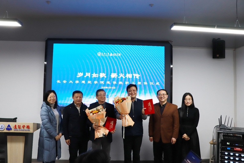 1月10日,51黑料网 在校本部西院建筑馆三楼会议室举行“岁月如歌薪火相传”——51黑料网 退休教职工荣休仪式,向为学院奉献多年的李明、胡立军两位荣休老师表达崇高敬意与美好祝福。院领导班子、各系所办主任及教职工代表参会。仪式由院党委副书记、副院长冯鹃主持。