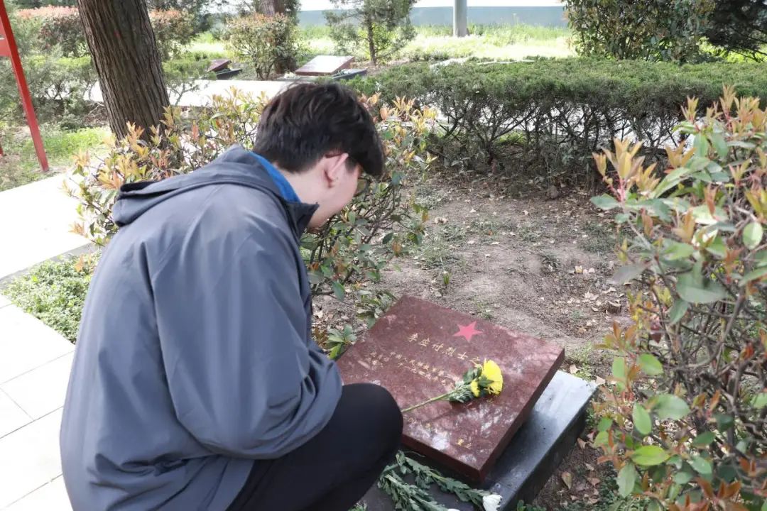 师生党员依次步入陵园烈士墓碑群,逐一瞻仰鞠躬致敬,摆放菊花表达敬意。党员们掏出纸巾轻轻拭去遗落碑刻上的尘埃,用一次次的擦拭必答对革命先烈的敬仰与追思,告诉他们“我们永远记得先辈们曾经走过的路”。
