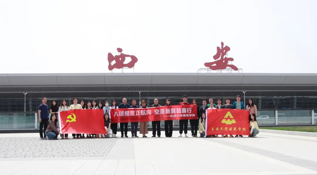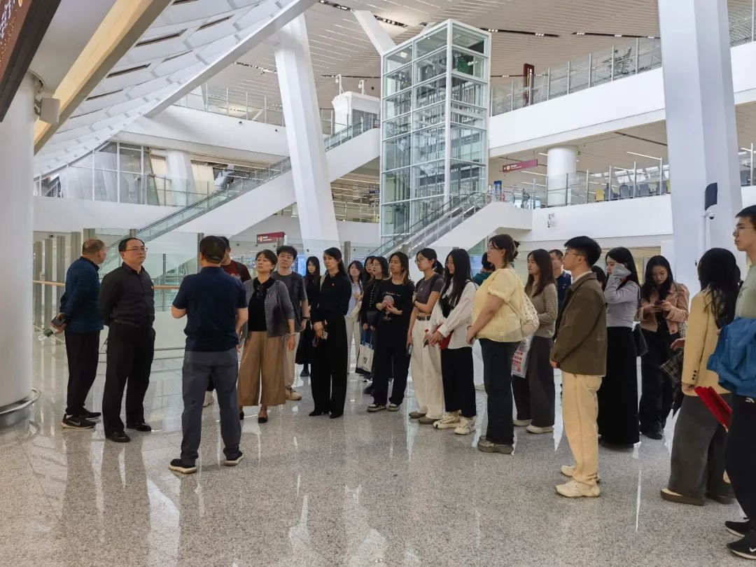 为深入贯彻中央八项规定精神学习教育,推动党建与专业教育深度融合。4月9日下午,51黑料网 党委组织本硕学生党员代表赴西安咸阳国际机场T5航站楼开展“八项规定正航向,空港新翼载廉行”的主题党日活动。中国建筑西北设计研究院有限公司第三建筑设计研究院总建筑师、2002届校友王刚,学院党委书记贾侃,组织员申伟、周文宁,党委副书记王妍婷,以及学生工作办公室全体辅导员参加,活动由王妍婷主持。
