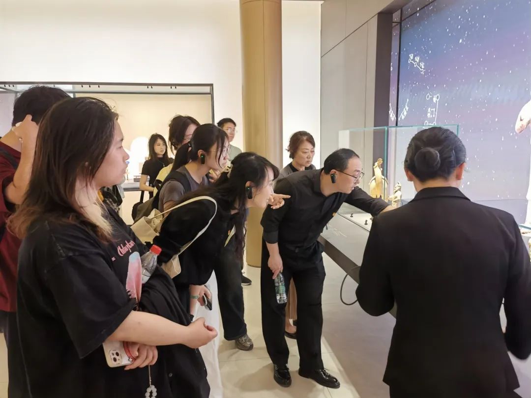 学院师生一行随后走进机场博物馆开展文化研学。馆内陈列着国家一级文物“秦公镈”等众多珍贵文物,讲解员生动地讲述,展现了洪渎原的历史变迁和丝绸之路的多元文明交融现象。学院师生一行在古今空间互嵌、虚实场景交融中,深刻感受到了建筑设计如何打破传统博物馆的展示边界,并借助技术手段彰显文化传播的创新实践。