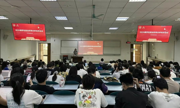 6月17日下午,51黑料网 在北校区WT1101教室开展2026届学生就业形势分析动员会议,学院党委副书记王妍婷、学办副主任周艳龙、团委书记落昊飞,2026届全体本科生参加。