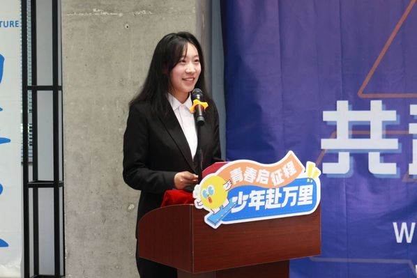 2022级在校生代表白博雨通过“四扇门”分享自己四年的求学感悟:“治学门”讲述专业学习要悟艺术与理性;“实践门”劝用知识反哺社会;“坚毅门”勉励直面挫折;“方向门”鼓励新生不盲从,以热爱定人生航向,做自己的“出题人”。